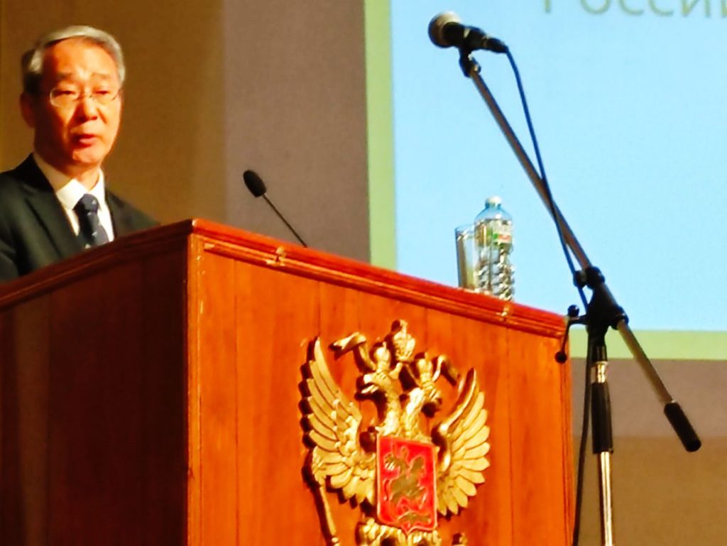 Следующим выступающим стал советник-посланник по делам образования посольства КНР в РФ Цао Шихай. Товарищ Цао сфокусировал свое выступление на заметном росте образовательной мобильности в наших странах, а таже подчеркнул заинтересованность китайских студентов в изучении русского языка и качестве примера он привел такой факт, что уже 185 китайских университетов предлагают своим студентам русскоязычные программы. В заключение докладчик выразил благодарность Центральному дому ученых и Обществу российско-китайской дружбы за организацию этой познавательной конференции.